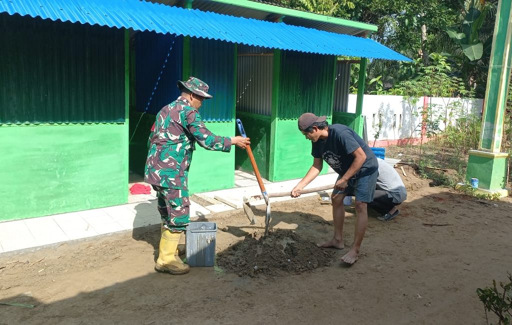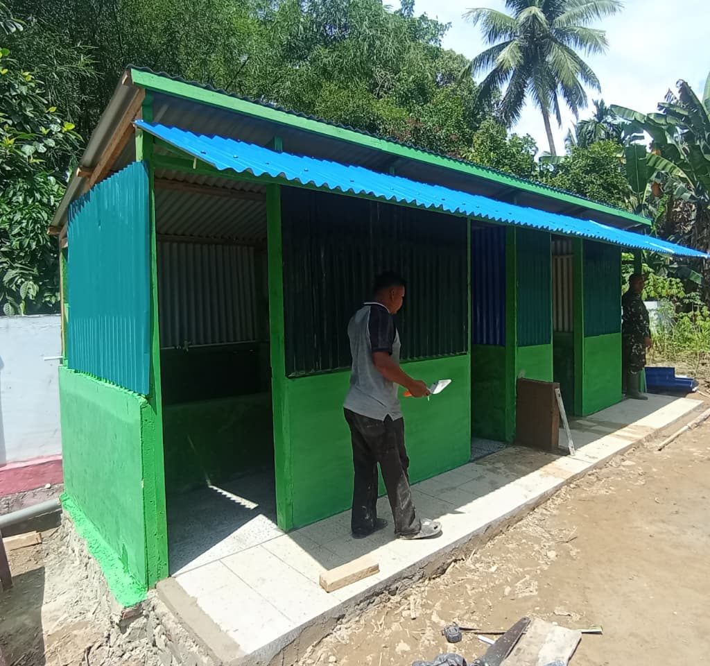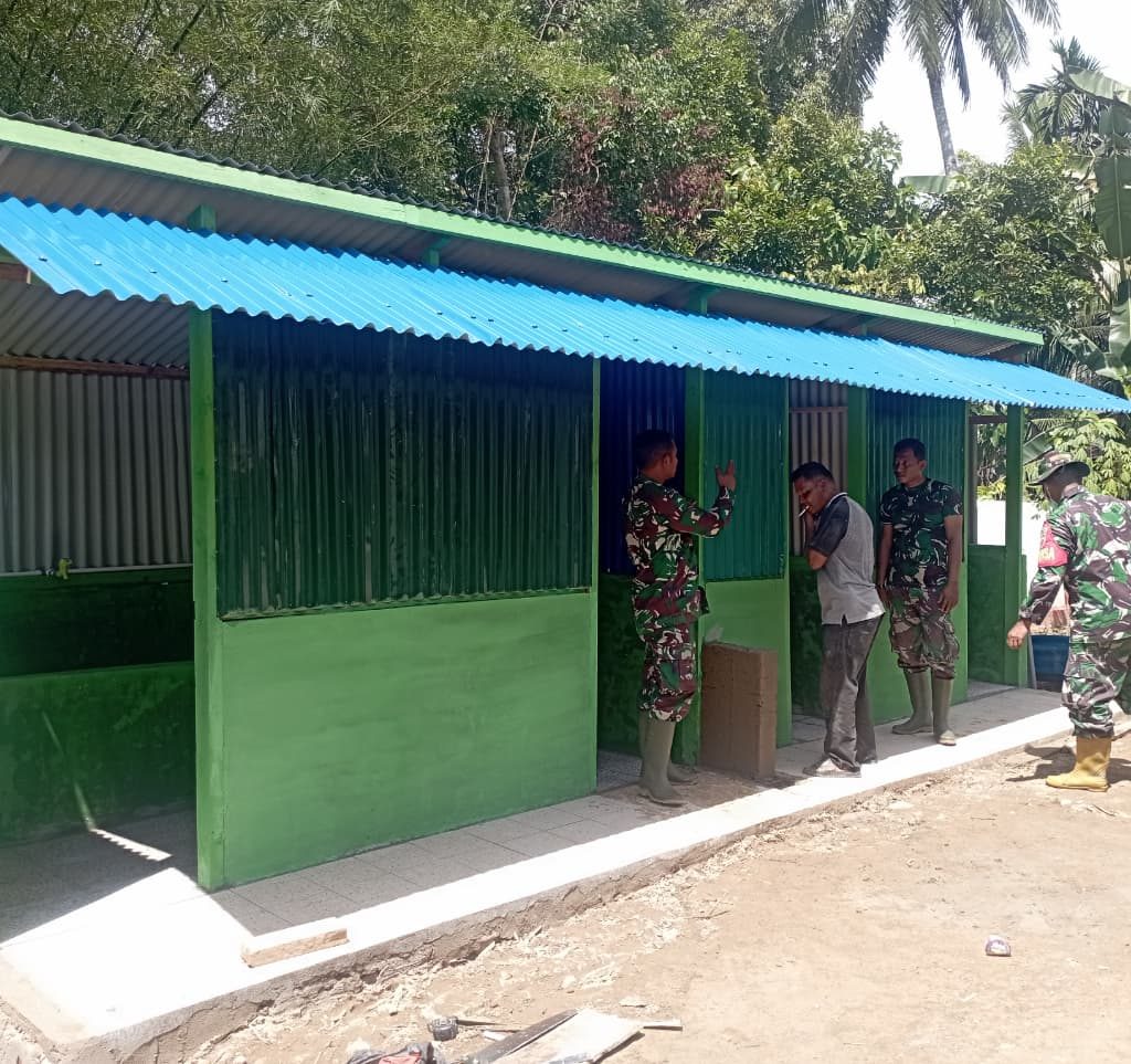 Pembangunan MCK darurat tersebut dilaksanakan dengan memanfaatkan bantuan sterad sebagai bagian dari upaya pemenuhan kebutuhan dasar pengungsi, khususnya di bidang sanitasi pascabencana. Personel TNI bersama warga setempat bergotong royong agar fasilitas tersebut segera dapat digunakan.
