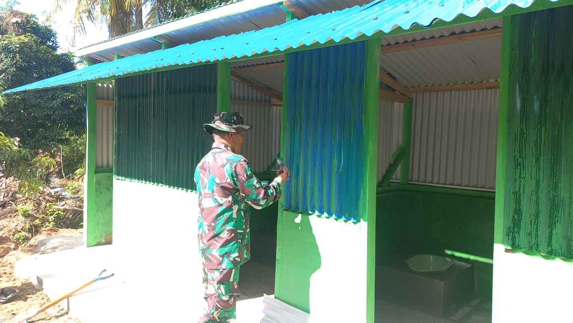 Pembangunan MCK darurat tersebut dilaksanakan dengan memanfaatkan bantuan sterad sebagai bagian dari upaya pemenuhan kebutuhan dasar pengungsi, khususnya di bidang sanitasi pascabencana. Personel TNI bersama warga setempat bergotong royong agar fasilitas tersebut segera dapat digunakan.