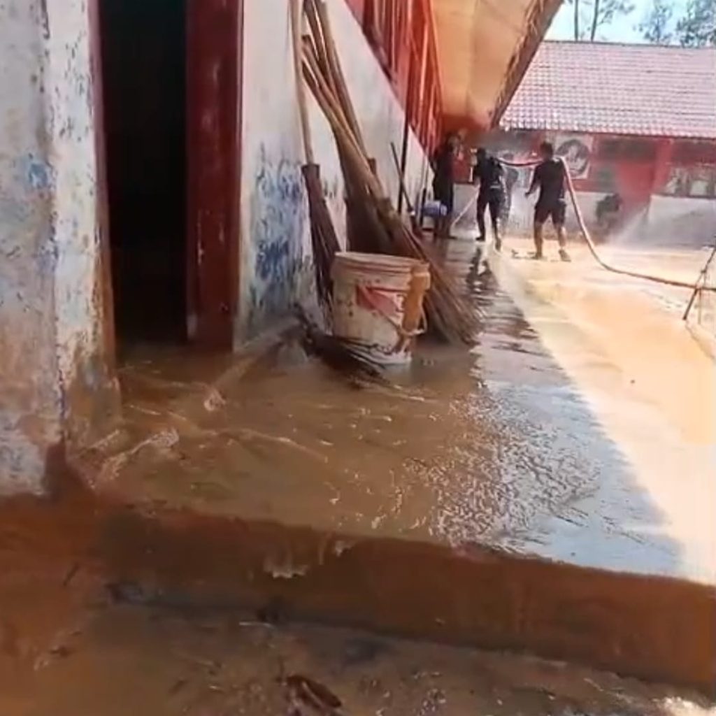 Sekolah tersebut menjadi salah satu fasilitas umum yang terdampak cukup parah akibat bencana yang terjadi beberapa pekan lalu. Luapan banjir dan longsor tidak hanya merusak akses jalan dan rumah warga, tetapi juga menggenangi ruang-ruang kelas, halaman sekolah, serta sarana penunjang kegiatan belajar mengajar, sehingga aktivitas pendidikan terhenti sementara.