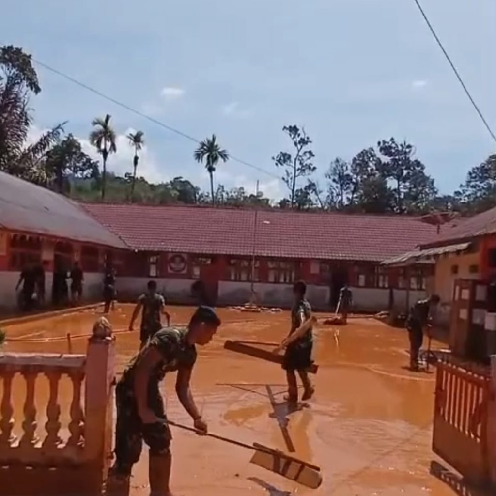 Tapanuli Tengah – Satgas Korem 023/Kawal Samudera (KS) terus melakukan upaya pemulihan sektor pendidikan pascabencana banjir bandang dan tanah longsor yang melanda wilayah Tapanuli Tengah. Pada Minggu (4/1/2026), personel Satgas dikerahkan untuk membersihkan sisa lumpur dan material banjir di SD Negeri Nomor 152983 Hutanabolon, Kecamatan Tukka, Kabupaten Tapanuli Tengah.