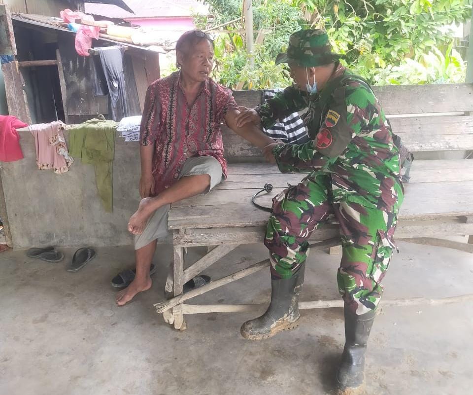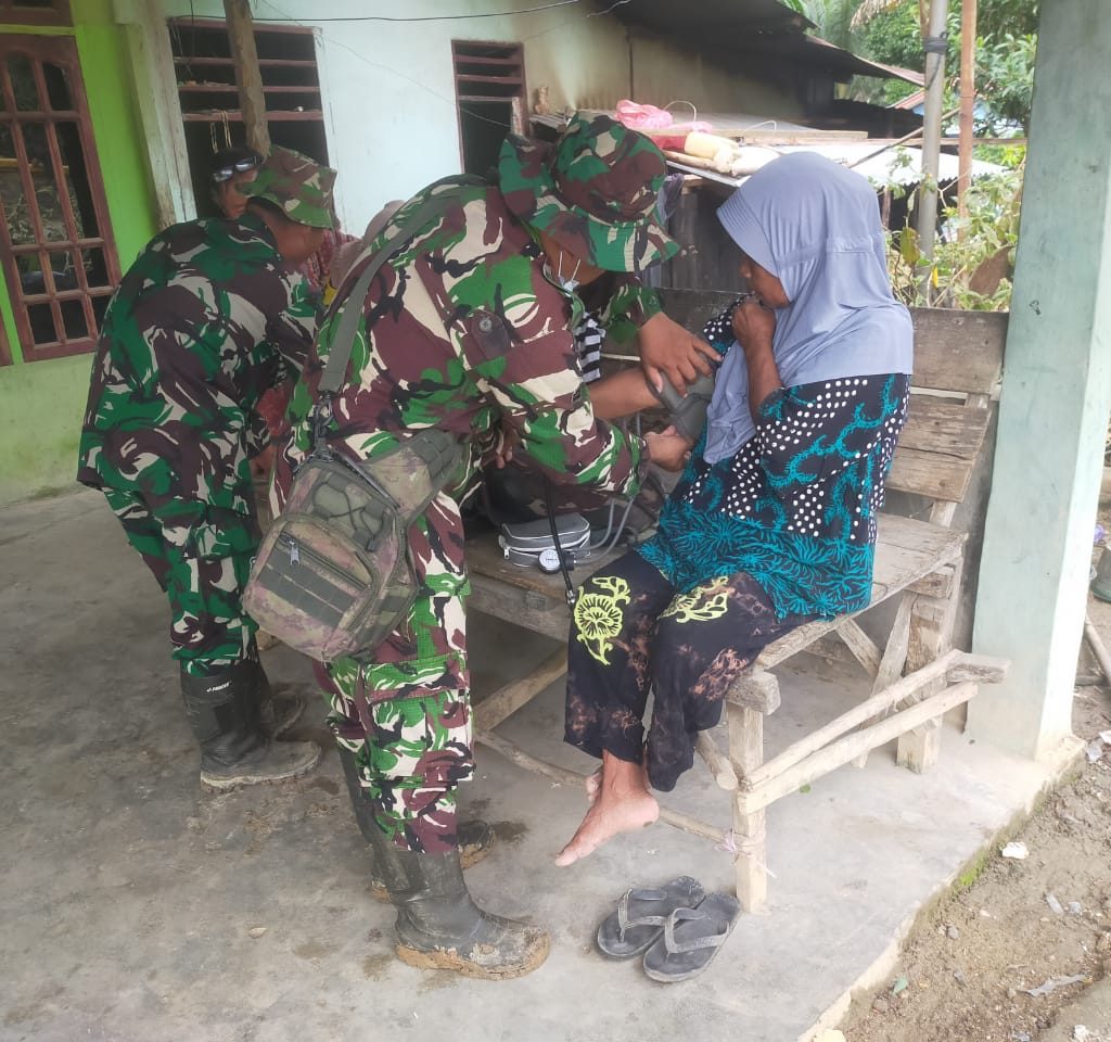 Tapanuli Selatan – Satgas Pos Bantuan Kesehatan Daerah Militer (Posbankes) Kodam I/Bukit Barisan melaksanakan pemeriksaan kesehatan bagi masyarakat terdampak banjir bandang di Desa Aek Ngadol, Kecamatan Batang Toru, Kabupaten Tapanuli Selatan, Sumatera Utara, Kamis (8/1/2026). Kegiatan Pelayanan Kesehatan ini tim medis langsung mendatangi rumah- rumah warga warga yang mengalami gangguan kesehatan pascabencana alam.