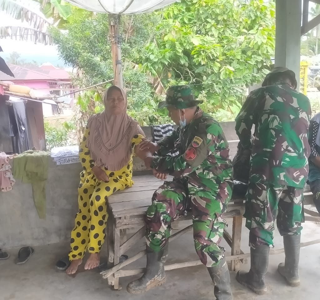 Satgas Posbankes Kodam I/BB Periksa Kesehatan Warga Terdampak Banjir di Aek Ngadol