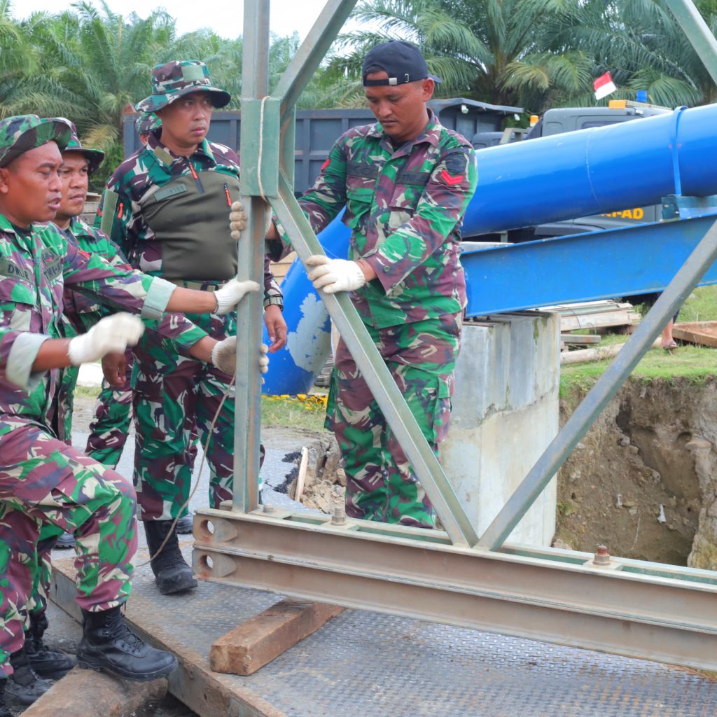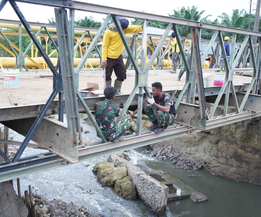 Satgas Yon Zipur 11/DW bersama Dinas Pekerjaan Umum (PU) menyelesaikan pembangunan Jembatan Super Compact 200