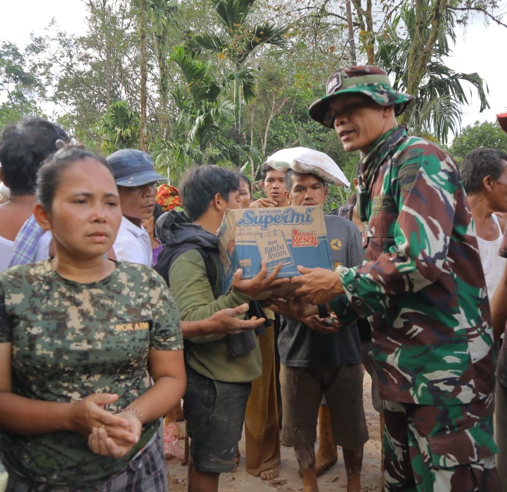Sebanyak 196 sak beras, 84 dus mi instan, 115 dus air mineral, 15 dus biskuit, serta tiga goni pakaian layak pakai dipikul prajurit menuju titik pengungsian. Bantuan ini dibagikan kepada 120 KK di Desa Naga Timbul, serta masing-masing 20 KK di Desa Mompang dan Desa Mardame. Seluruh warga diketahui belum pernah mendapatkan bantuan sejak bencana terjadi.