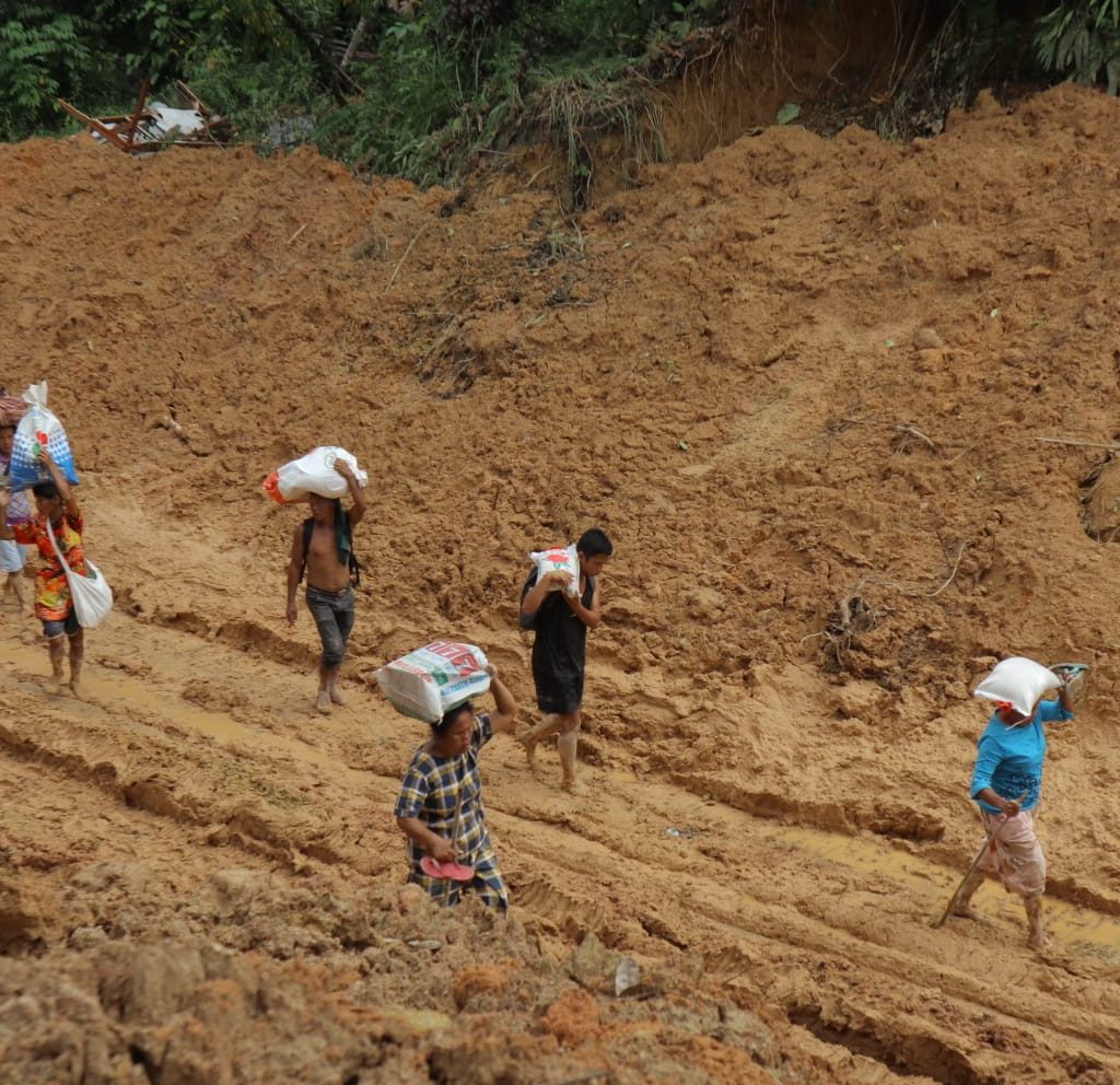 Prajurit Yonif 122/TS harus menempuh perjalanan kaki sekitar lima kilometer untuk membawa logistik dari titik terakhir yang masih dapat diakses kendaraan. Satgas menyebut kebutuhan bantuan masih sangat mendesak dan meminta tambahan suplai sembako dikirim ke Adiankoting untuk kembali didorong menuju desa-desa terisolir.