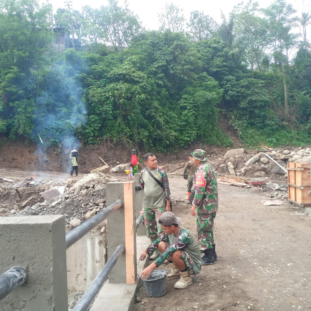 Padangsidimpuan – Satgas Yonzipur I/BB bersama Yonzipur I/DD, Zidam I/Bukit Barisan, dan Kodim 0212/Tapanuli Selatan terus mempercepat pembangunan Jembatan Aramco di Lingkungan IV, Kelurahan Lubuk Raya, Kecamatan Padangsidimpuan Hutaimbaru, Kota Padangsidimpuan, Sumatera Utara, Minggu (11/1/2026). Jembatan penghubung Kelurahan Lubuk Raya dan Desa Lubuk Manik ini sebelumnya rusak akibat tergerus banjir bandang yang terjadi sekitar satu bulan lalu.