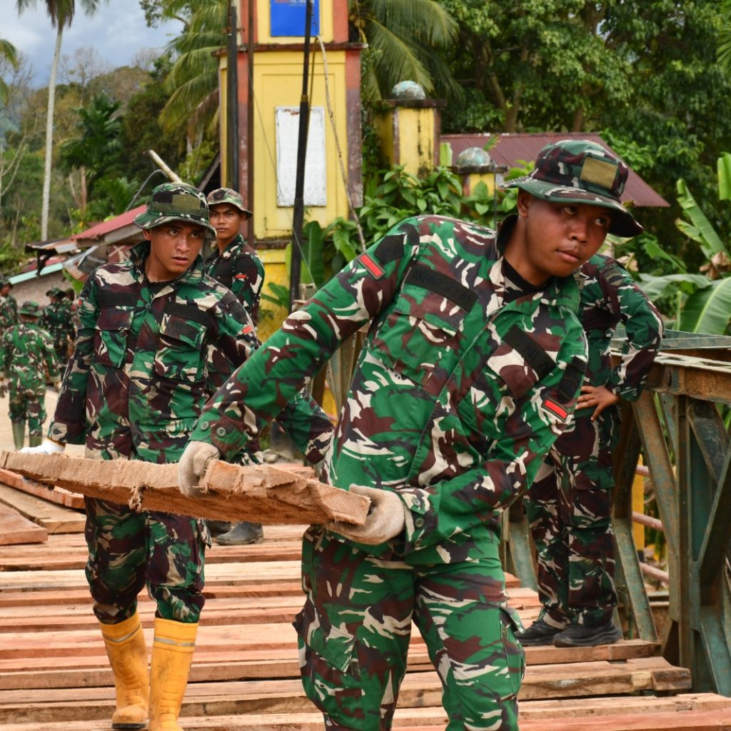 Memasuki hari kedua, pengerjaan telah mencapai tahap pemasangan papan lantai. Meski belum seluruhnya terpasang, personel Yonzipur I/DD tetap bekerja maksimal agar jembatan darurat tersebut segera rampung dan bisa dilalui warga.