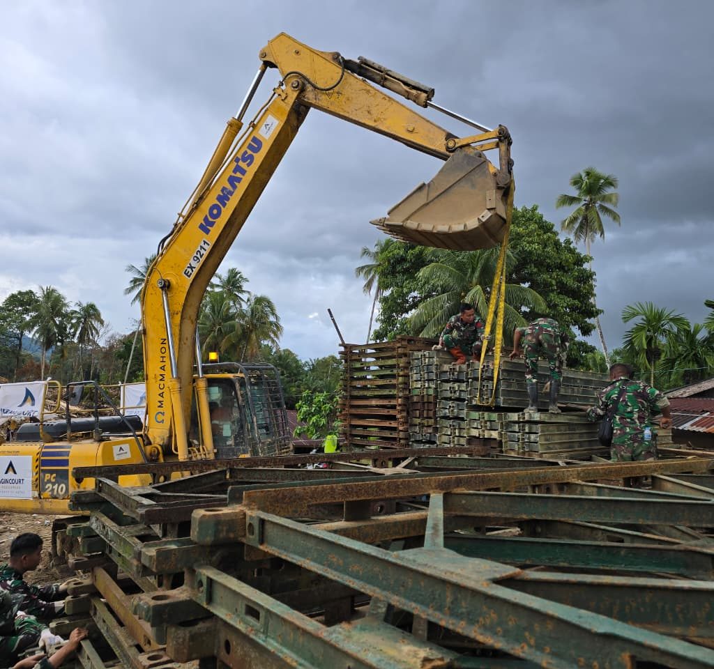 Kapendam I/BB menyampaikan bahwa personel terus bekerja maksimal agar jalur penghubung dapat segera kembali dilalui. “Kami berharap pemasangan ini cepat tuntas sehingga masyarakat bisa kembali beraktivitas dengan aman,” ujarnya.