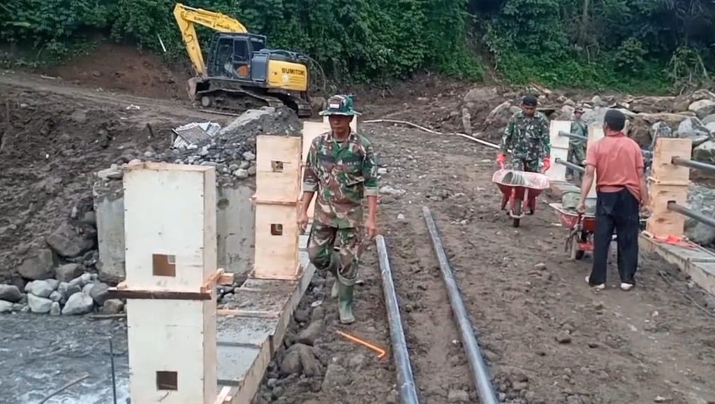 Satgas Yonzipur I/DD Rampungkan Jembatan Aramco Lubuk Raya di Padangsidimpuan