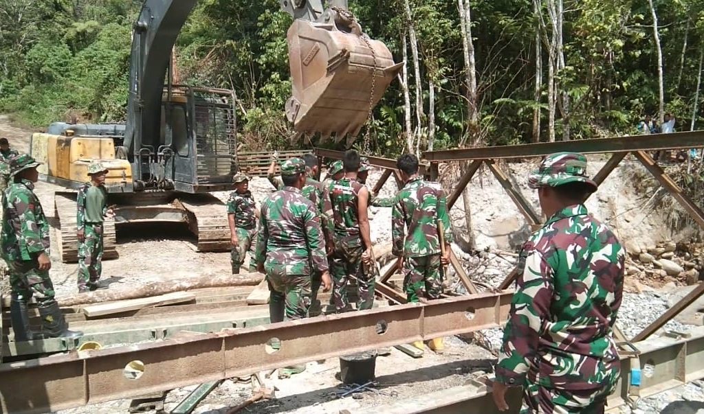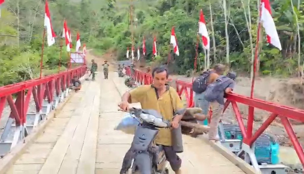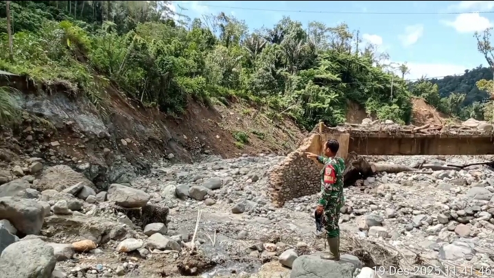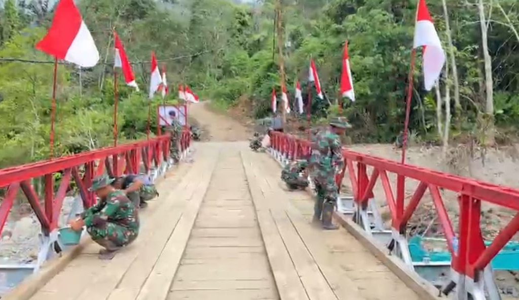 Tapanuli Selatan – Satgas Yonzipur I/DD merampungkan pemasangan jembatan Bailey di Desa Aek Nabara, Kecamatan Marancar, Kabupaten Tapanuli Selatan, Sabtu (10/1/2026). Jembatan ini kembali membuka akses utama warga yang sempat terputus akibat banjir bandang beberapa pekan lalu.