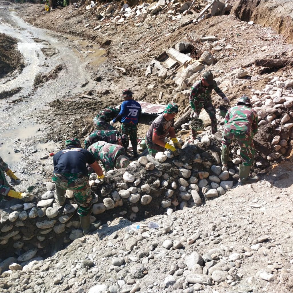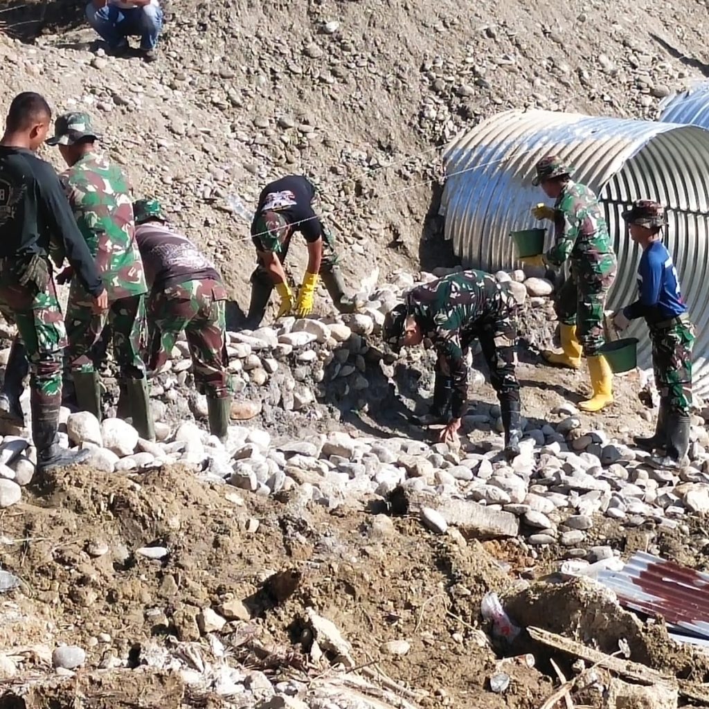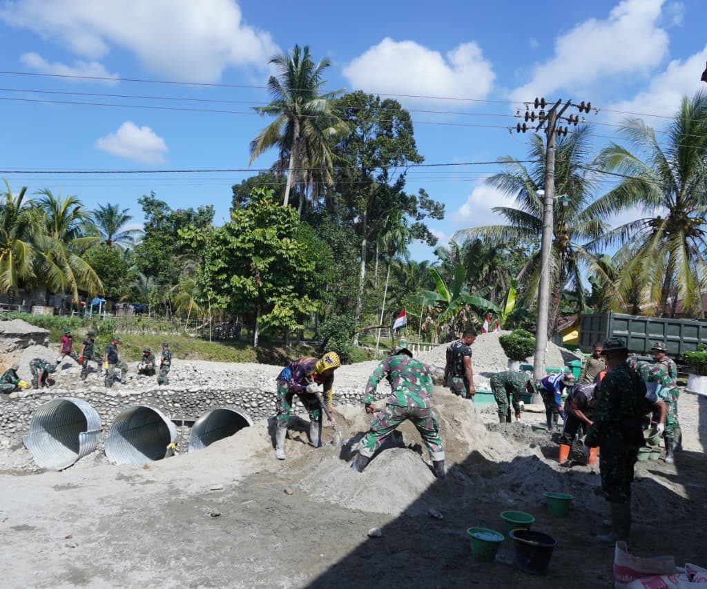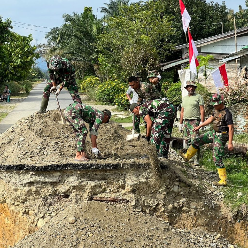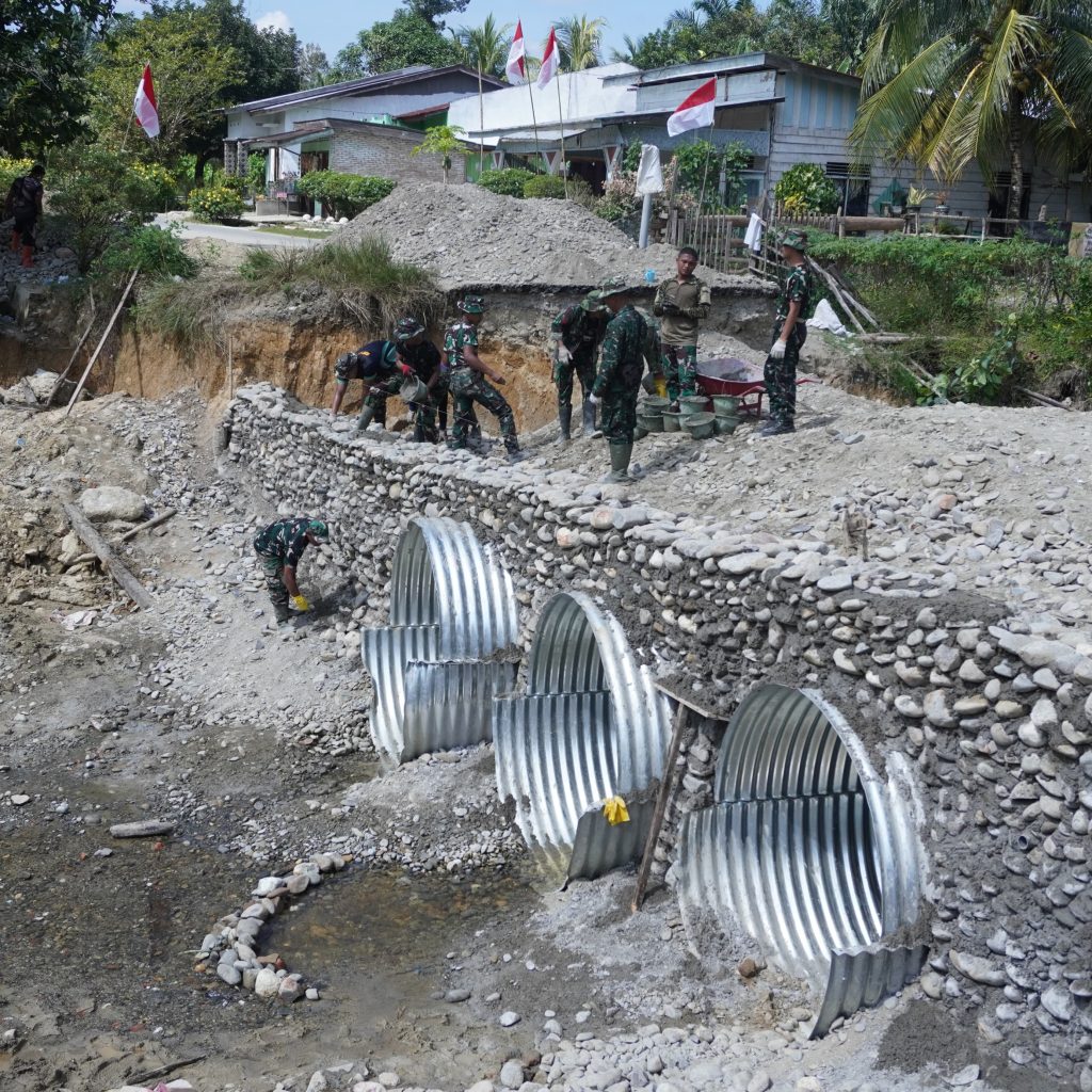 Langkat — Satgas Penanggulangan Bencana Alam (Gulbencal) Kodam I/Bukit Barisan melalui Kodim 0203/Langkat terus mempercepat pembangunan jembatan tipe Aramco di Desa Sei Litur Tasik, Kecamatan Sawit Seberang, Kabupaten Langkat, Selasa (23/12/2025). Pembangunan jembatan ini dilakukan untuk memulihkan dan memperlancar akses transportasi masyarakat yang terdampak kondisi infrastruktur sebelumnya.