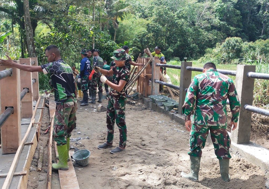 Pengerjaan jembatan melibatkan personel dari Yonzipur I/DD dan Babinsa Koramil setempat. Jembatan yang dibangun merupakan jembatan tipe Aramco dengan panjang keseluruhan 8 meter dan lebar 3 meter. Sementara itu, kedalaman saluran mencapai 3 meter dengan diameter pipa Aramco 1,5 meter dan panjang masing-masing pipa 4 meter yang dipasang sebanyak tiga lubang.